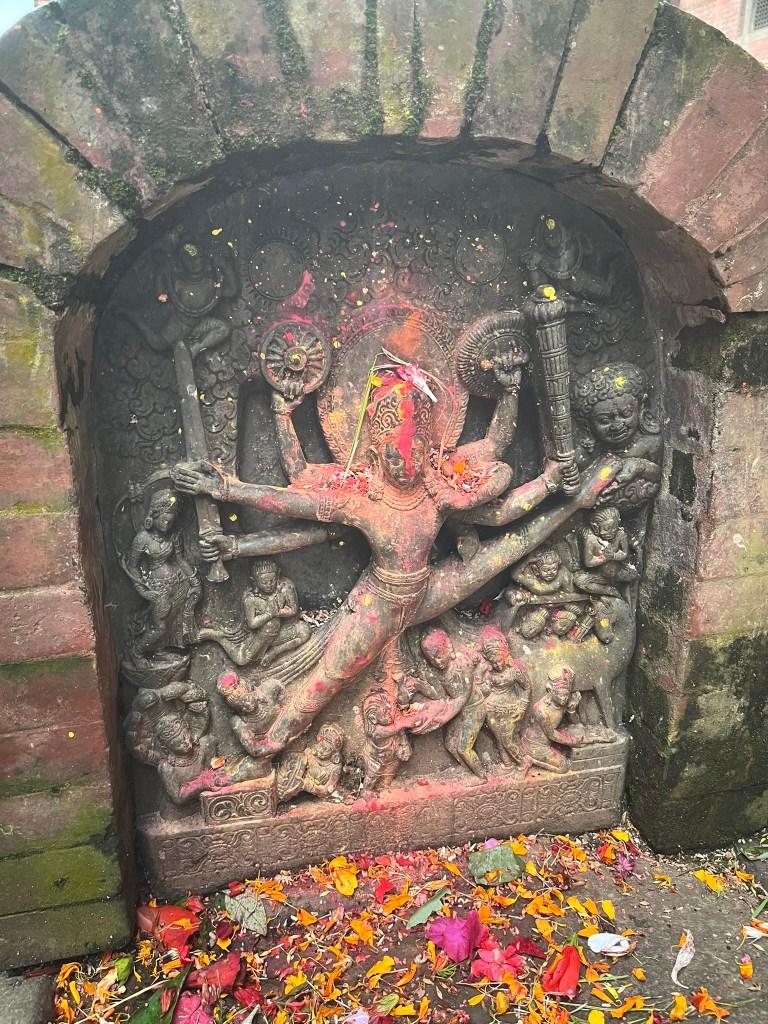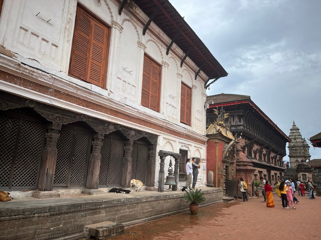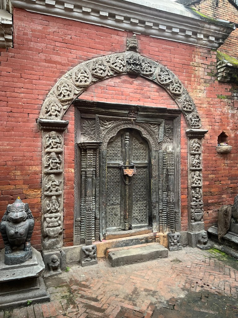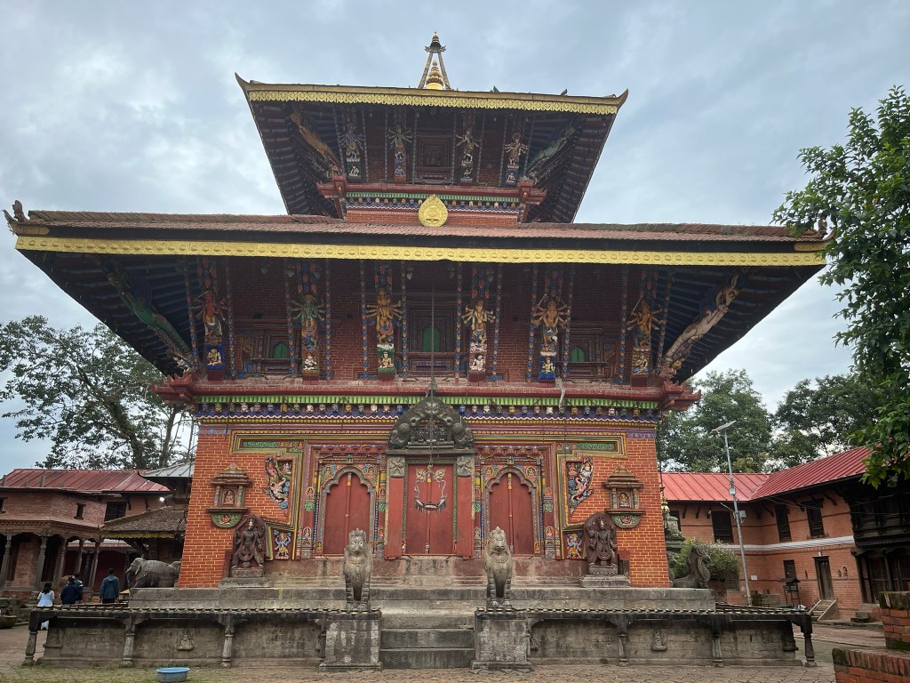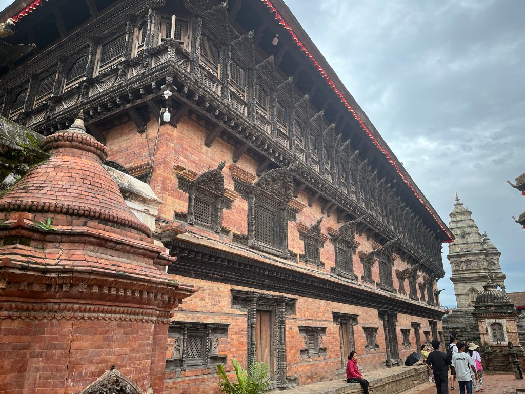 What I found particularly special about the temple is that it has recently be painted using natural pigments. None of the temples or pagodas we have seen so far have retained their ancient painting and it is very expensive to repaint using the natural pigments that would have been used centuries ago. So to see what all the temples and pagodas would have looked like in Kathmandu and Bhaktapur Durbar Square gave you a better sense of just how spectacular these palaces must have been.