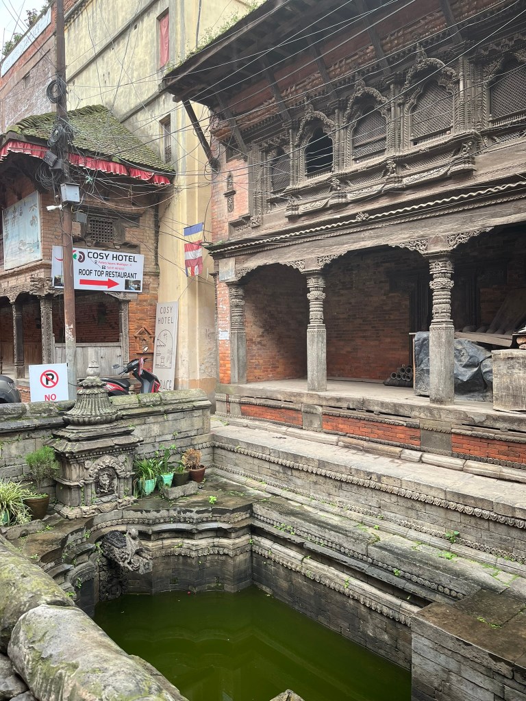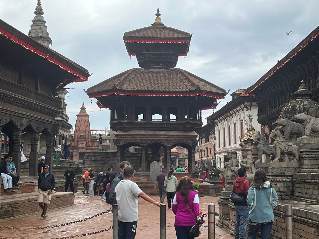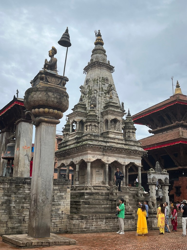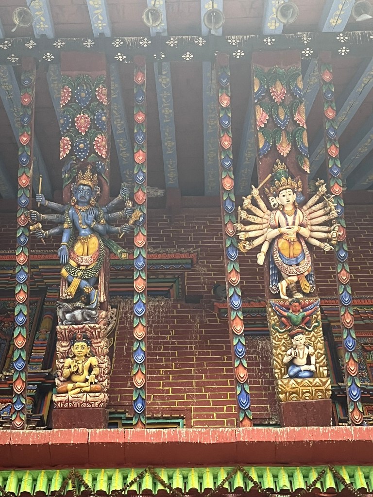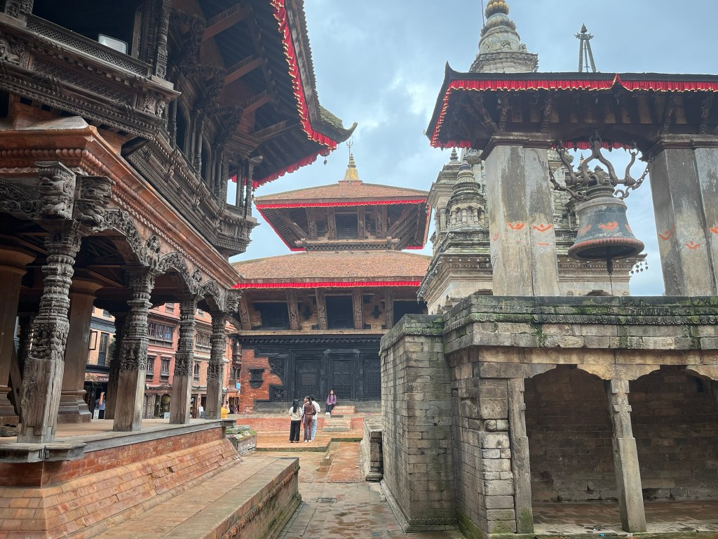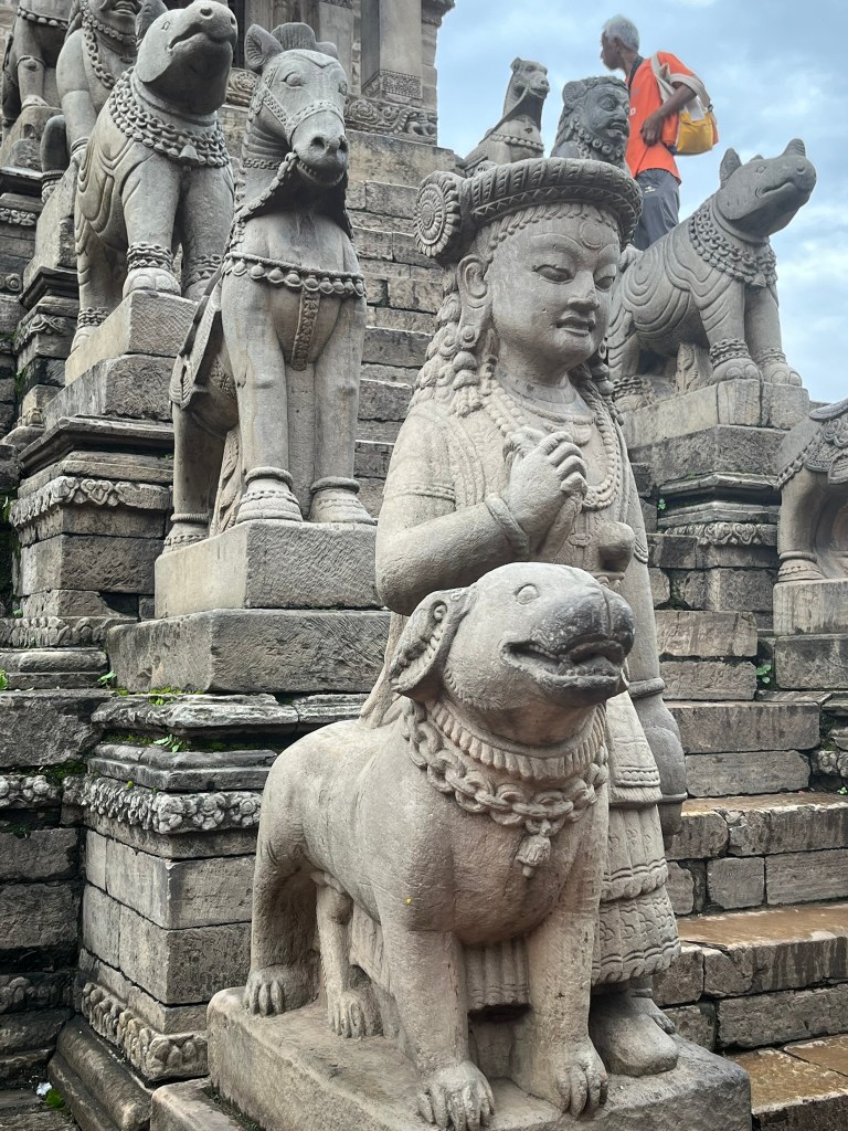 What I found particularly special about the temple is that it has recently be painted using natural pigments. None of the temples or pagodas we have seen so far have retained their ancient painting and it is very expensive to repaint using the natural pigments that would have been used centuries ago. So to see what all the temples and pagodas would have looked like in Kathmandu and Bhaktapur Durbar Square gave you a better sense of just how spectacular these palaces must have been.