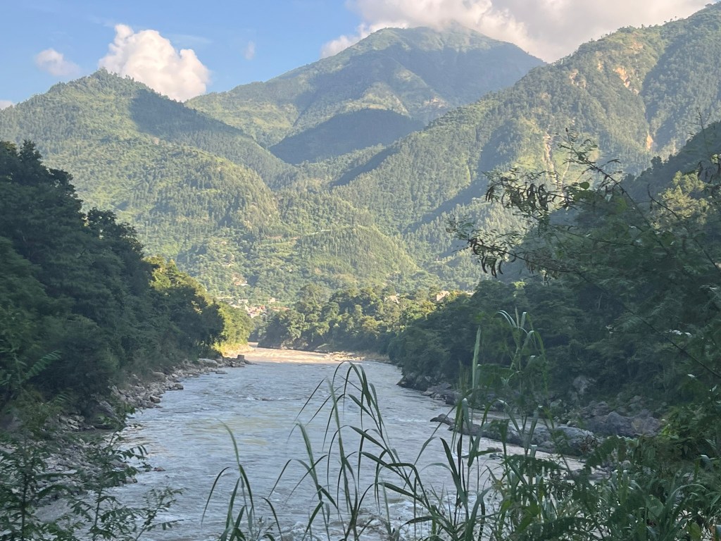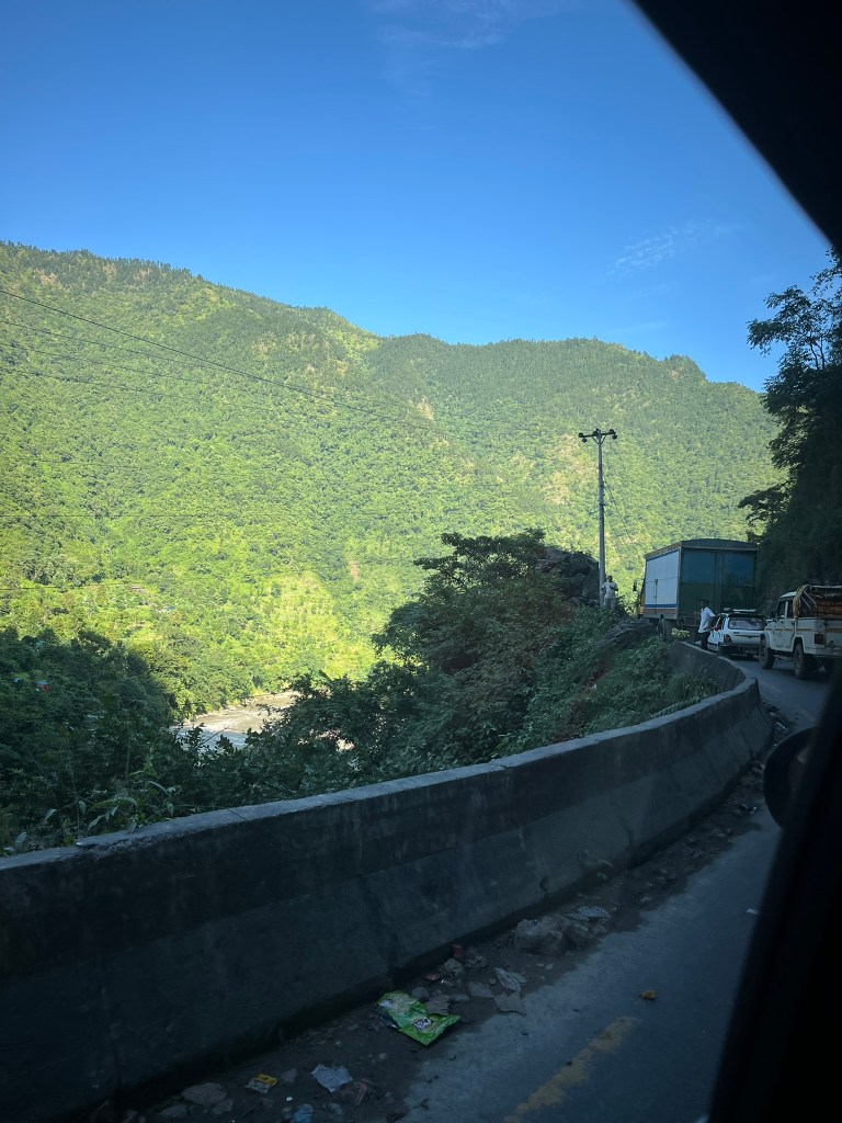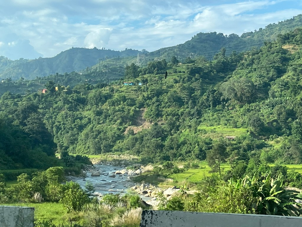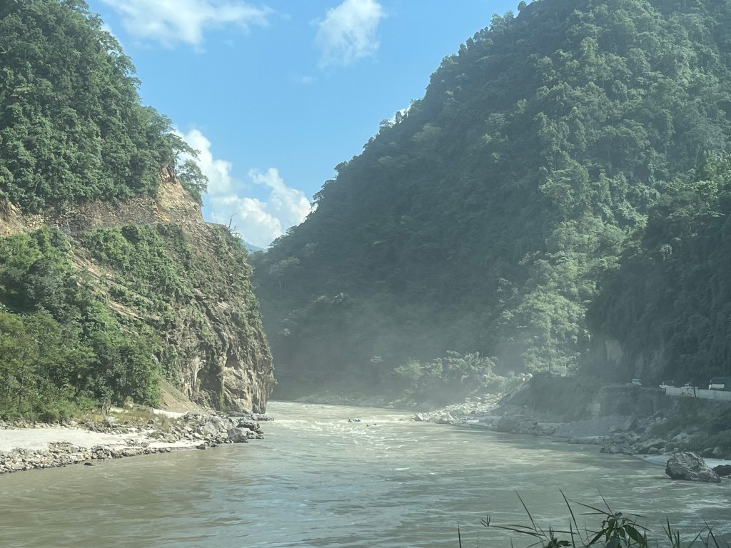 The drive is exceptionally scenic, and follows various rivers as you wind through a series of narrow gorges and descend in altitude almost to sea level to the flat terai lowland region of Nepal. As you peer down from the roadside, you will often see hanging bridges, connecting small terraced farming communities on the other side of the valley to the main road. The road to Chitwan is critical to Nepal as it is the main route through which goods come to India from. If this route is effected by, for example a large landslide that takes multiple days to be cleared, prices of certain good go up in Kathmandu due to shortages. That is how critical a road it is. And it is in average to poor condition, with some sections not tarmacked and others full on pot holes. That said, it certainly isn’t as bad as the road we experienced from the border with Tibet to Kathmandu.