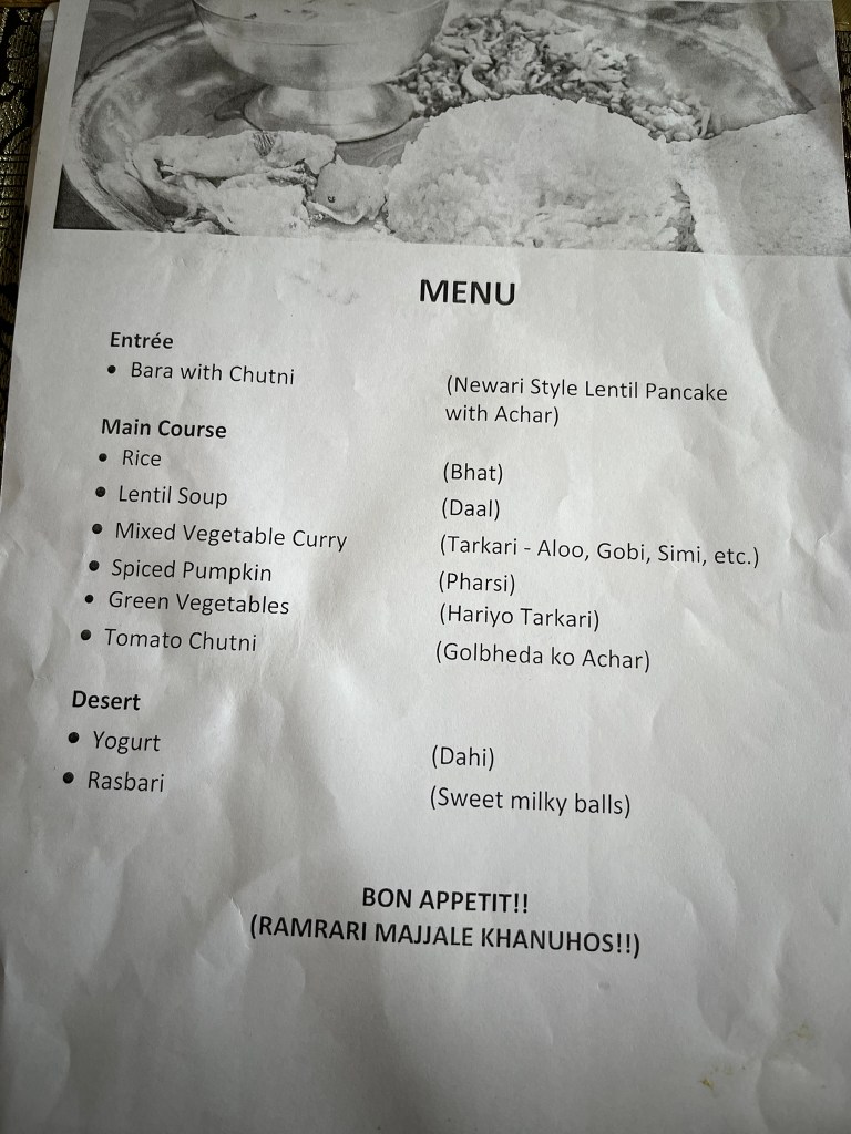All in all, Nepalese cuisine has been extremely varied and tasty. I was a bit worried it would be super spicy, but thankfully the kitchens here are happy to adjust the spice levels for tourists. We did have to eat in restaurants that our guide knew cooked with filtered and purified water though as a precaution, but we still had a lot of choices.