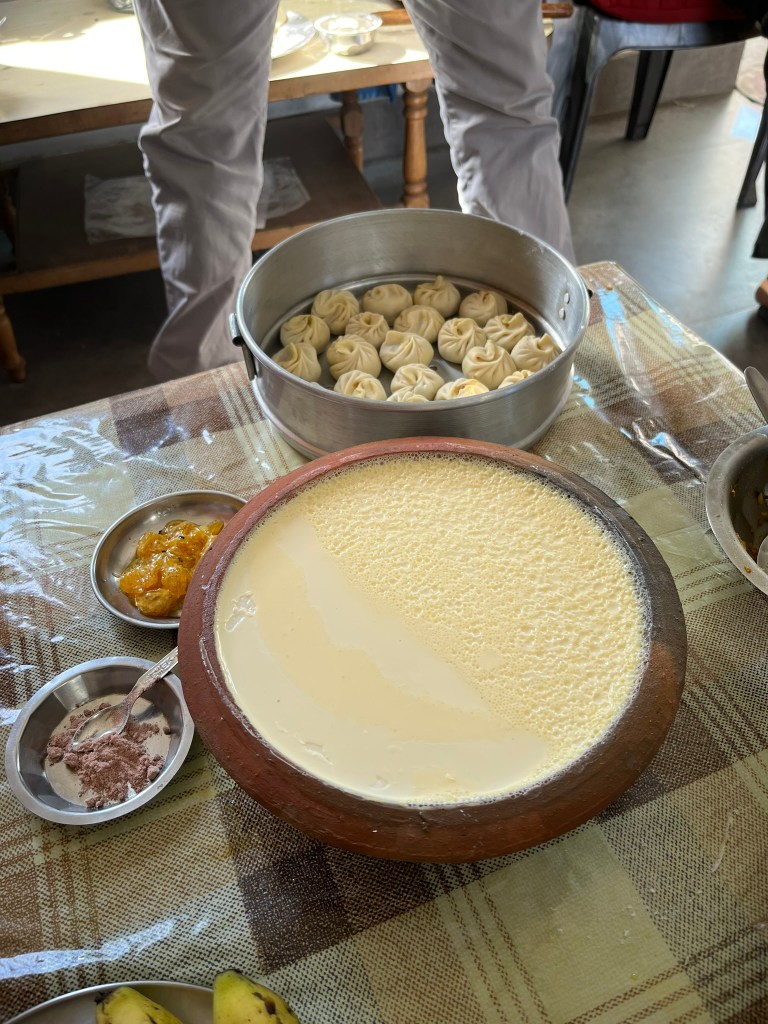 Whilst at the family’s home we also got to try juju dhau, which literally means ‘king curd’ and is a special yoghurt served in clay pots and only available in Bhaktapur. It was delicious and reminded me a little of greek yoghurt in terms of its thick texture. We also tried a delicious dessert using mandarin segments, fried fenugreek seeds and hot oil. I’m not sure what it was called, but it was great.