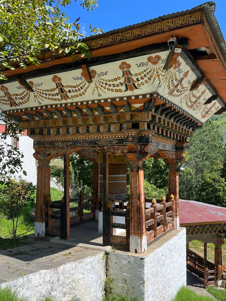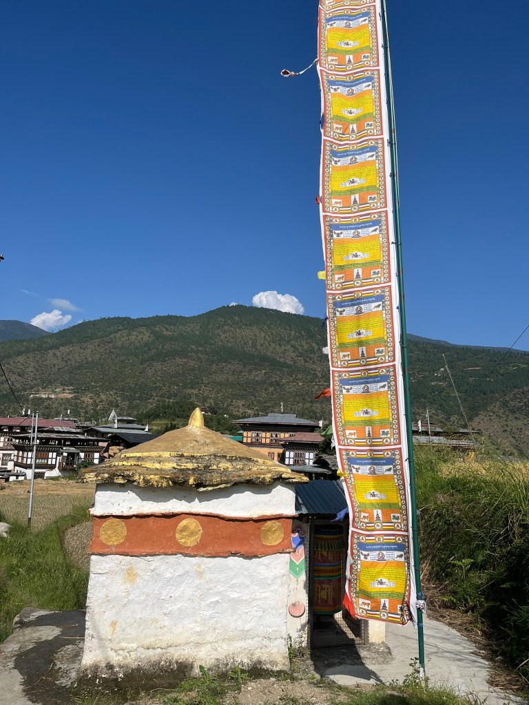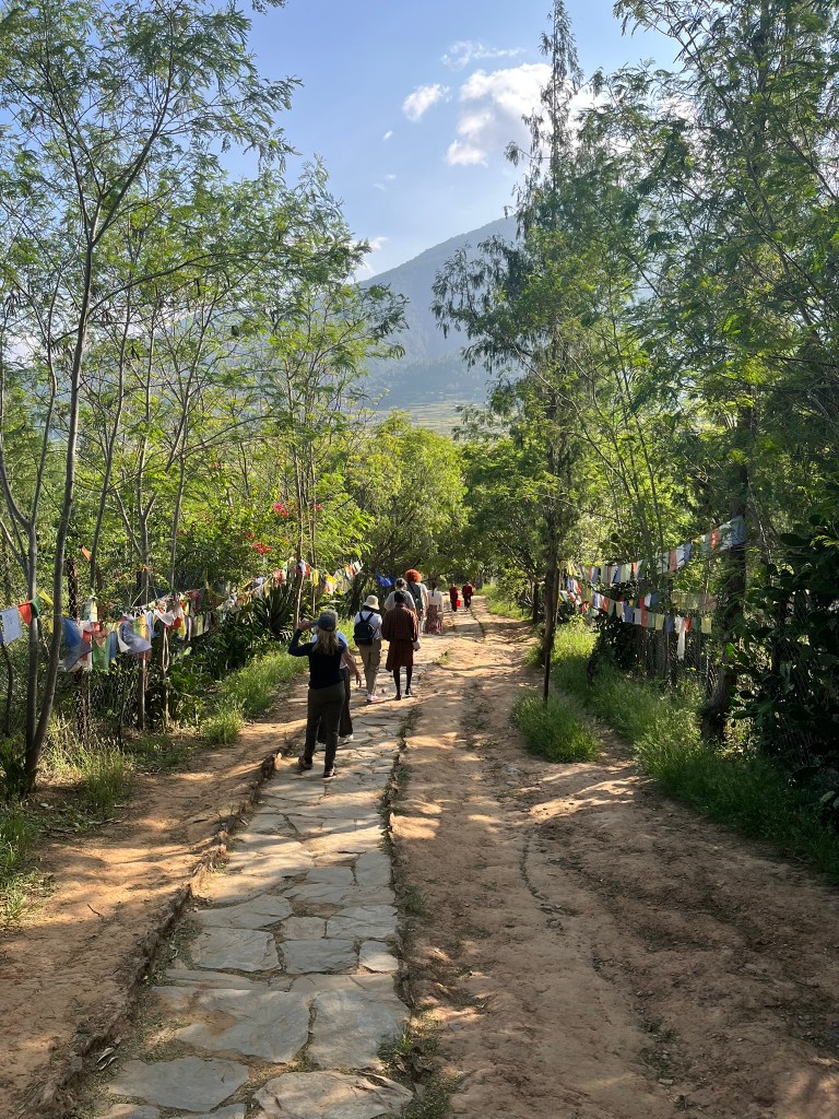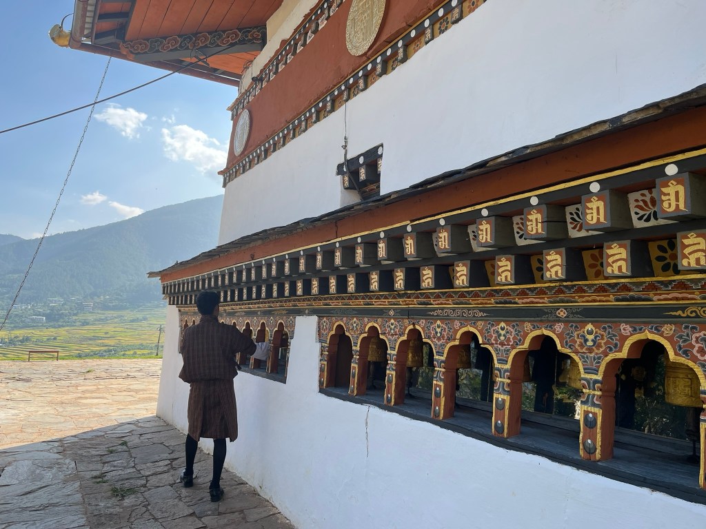 As you descend from the pass, the road descends dramatically through lush forest and the vegetation shifts from pine forest to subtropical bamboo and banana groves. We stopped in the village of Lobesa for lunch and then walked through the rice fields to the village of Sopsokha, where it is possible to visit the ‘Madman Temple’ called Chimi Lhakhang. The temple was built to honor Lama Drukpa Kunley (the same person who the legend says created the Bhutanese national animal). He was known as the Divine Madman for his unorthodox style of teaching Buddhism using humor and shock to challenge conventional religious norms. The legend says at the site of the temple, Kunley subdued a demoness, said to have turned into a dog, and trapped its power, and then blessed the location where the temple now stands. Chimi Lhakhang is widely known in Bhutan as a fertility pilgrimage site and many couples come to seek blessings so that they may conceive children. The ritual requires women to circumambulate the temple carrying a wooden phallus and offering prayer. There are also great views looking down into the valley from the temple.