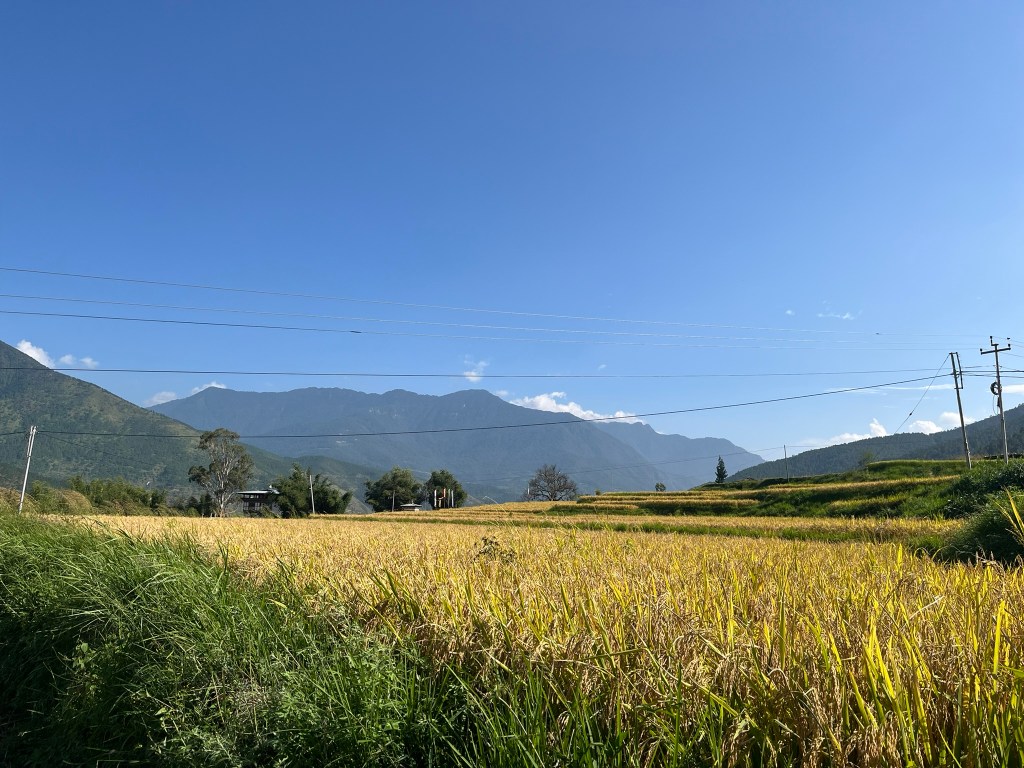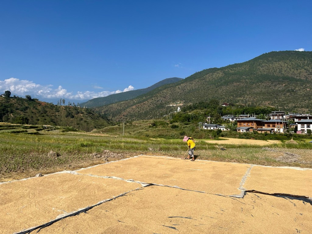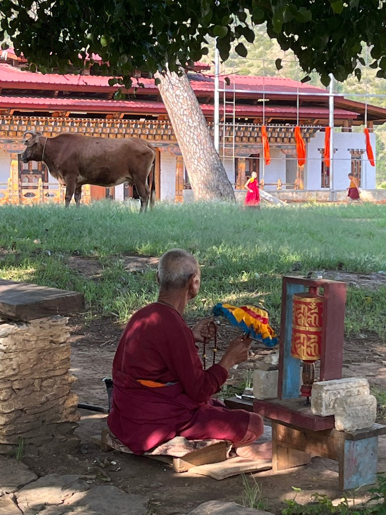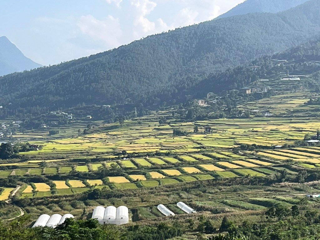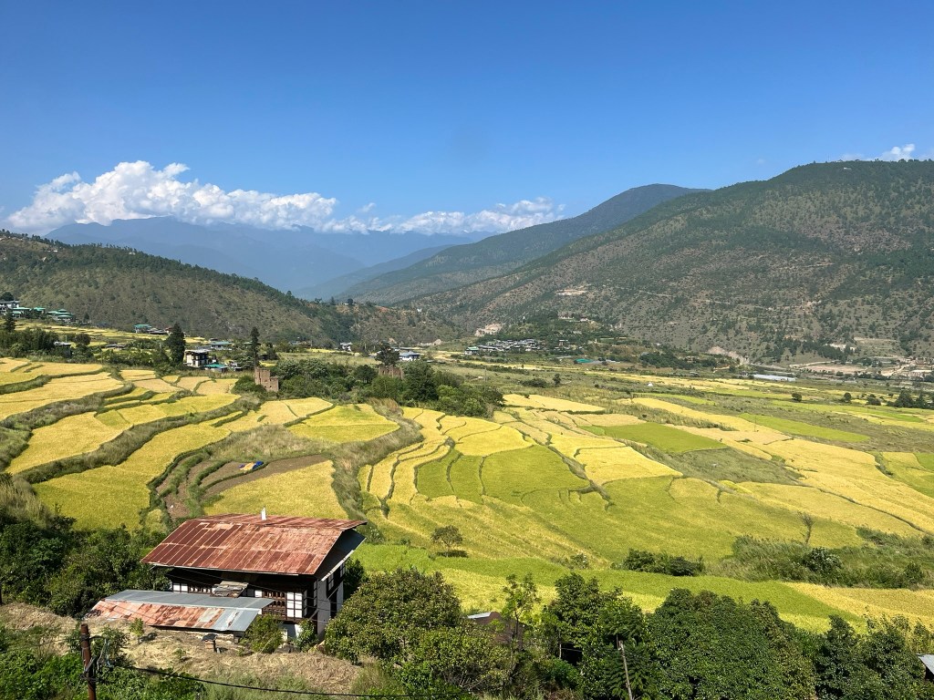 As you descend from the pass, the road descends dramatically through lush forest and the vegetation shifts from pine forest to subtropical bamboo and banana groves. We stopped in the village of Lobesa for lunch and then walked through the rice fields to the village of Sopsokha, where it is possible to visit the ‘Madman Temple’ called Chimi Lhakhang. The temple was built to honor Lama Drukpa Kunley (the same person who the legend says created the Bhutanese national animal). He was known as the Divine Madman for his unorthodox style of teaching Buddhism using humor and shock to challenge conventional religious norms. The legend says at the site of the temple, Kunley subdued a demoness, said to have turned into a dog, and trapped its power, and then blessed the location where the temple now stands. Chimi Lhakhang is widely known in Bhutan as a fertility pilgrimage site and many couples come to seek blessings so that they may conceive children. The ritual requires women to circumambulate the temple carrying a wooden phallus and offering prayer. There are also great views looking down into the valley from the temple.