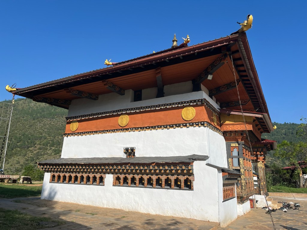 Just outside of Thimphu lies Simtokha Dzong, one of the oldest surviving fortress-monasteries in Bhutan. It is small in size when compared to other dzongs, but historically extremely important. It was the first dzong built by the Tibetan lama who unified Bhutan into a single nation in the 17th century and established both the administration and spiritual foundation of his rule. According to legend the site was chosen because it was believed to be haunted by demons who troubled travellers in the valley. The Tibetan lama subdued the demons and built the dzong to imprison its spirit beneath the structure, ensuring peace for the land. The dzong guarded the entrance to Thimphu valley and controlled the trade route between Paro and Thimphu. It also served as a monastic school, as it still does today.