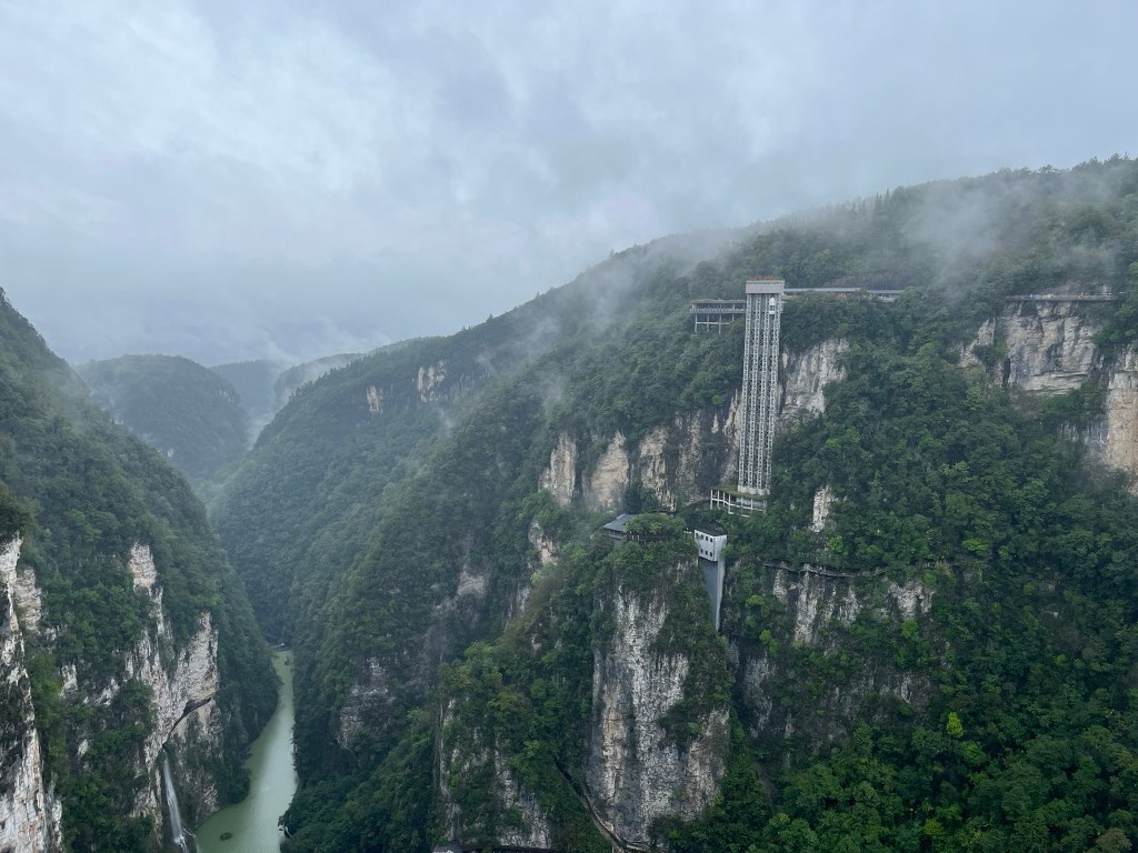 Next it’s ‘choose your own adventure’ time. Do you want to zipline across the canyon? And then take a giant slide to the bottom of the gorge? Or just get the lift down? It was pouring with rain, so I was boring and chose the lift. I think it’s pretty strange even to have a lift in a scenic place like this. But I had no idea what was to come over the next 2 days and now a lift doesn’t seem out of place in nature at all to me.