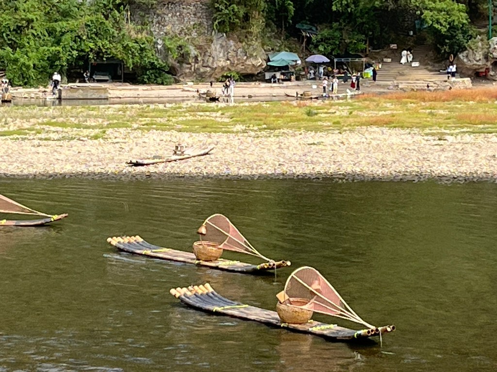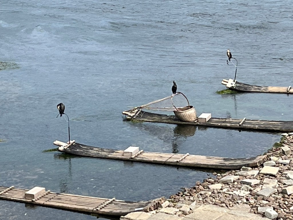The cruise down the Li River is without doubt one of the highlights of my travels this year. The guidebooks all state how fantastic a day out it is, but I can attest it really is as wonderful and magical as the reviews say it is. Once we arrived in Yangshuo we headed to my hotel on foot (the beauty of not having to schlep my luggage around) through the center of this small town. I immediately liked the vibe even though it is a mega-tourist hot spot. Along the walk to the town’s most famous street – West Street, you can the famous bamboo rafts, with fishing cormorants parked up along the edge of the river. This method of fishing has been practiced in China for over 1000 years. Nowadays, the fisherman perform for tourists for income rather than actually fishing, which is a bit sad.