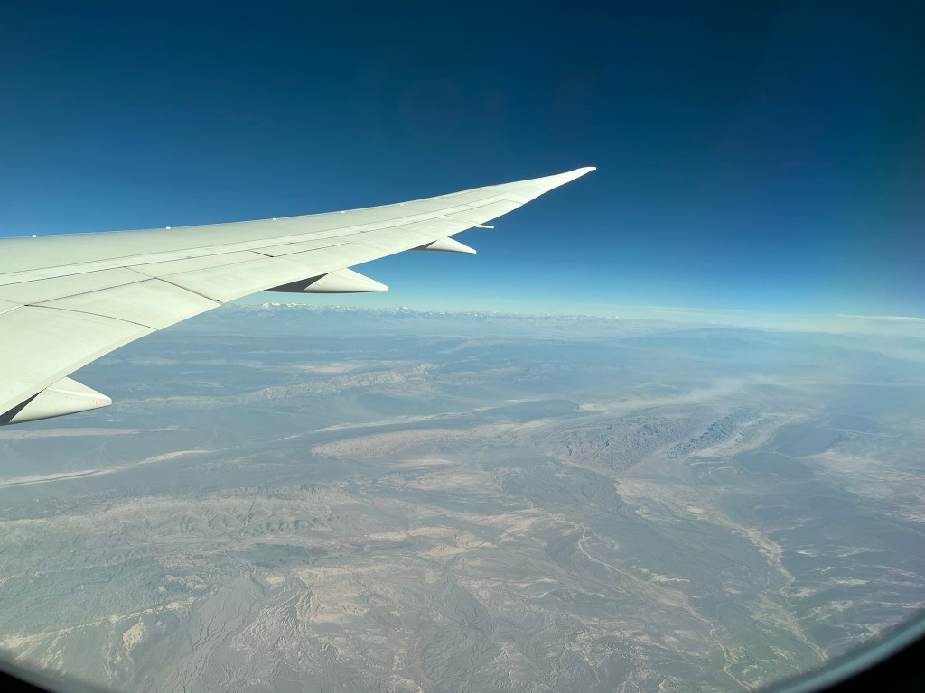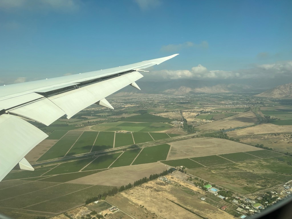 The last 90 minutes before you land in Chile’s capital of Santiago, make the 14-hour flight from the UK totally worth it. We were treated to clear skies and had perfect views as we crossed the Andes mountain range. The geologically features of this region are so pronounced and big in scale, that it is easy from a bird’s eye view to read the mountains and watch as the geographic formations change below as you approach the central spine of the mountain range.