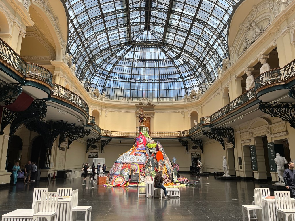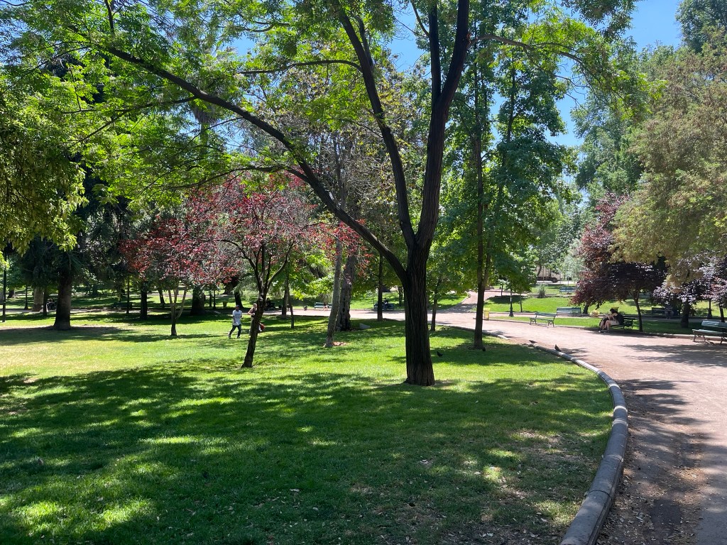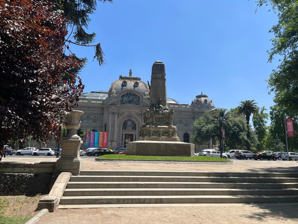 Lastarria is located on the edge of Parque Forestal, a long ribbon of parkland running parallel to the Mapocho River and leading us to the Museum Nacional de Bellas Artes. The building is worth visiting, even if you are not interested in art. It was built in the early 20th century during Chile’s ‘Belle Epoque’ period when Santiago was seeking to modernize and align culturally with Europe, and has a Beaux-Arts design of classical columns and sculptural ornamentation on its facade. Inside reveals a fantastic iron-and-glass domed roof, designed and fabricated in Belgium and shipped to Chile. This fills the central atrium of the museum with natural light, and rooms lead off of the atrium to the galleries.
