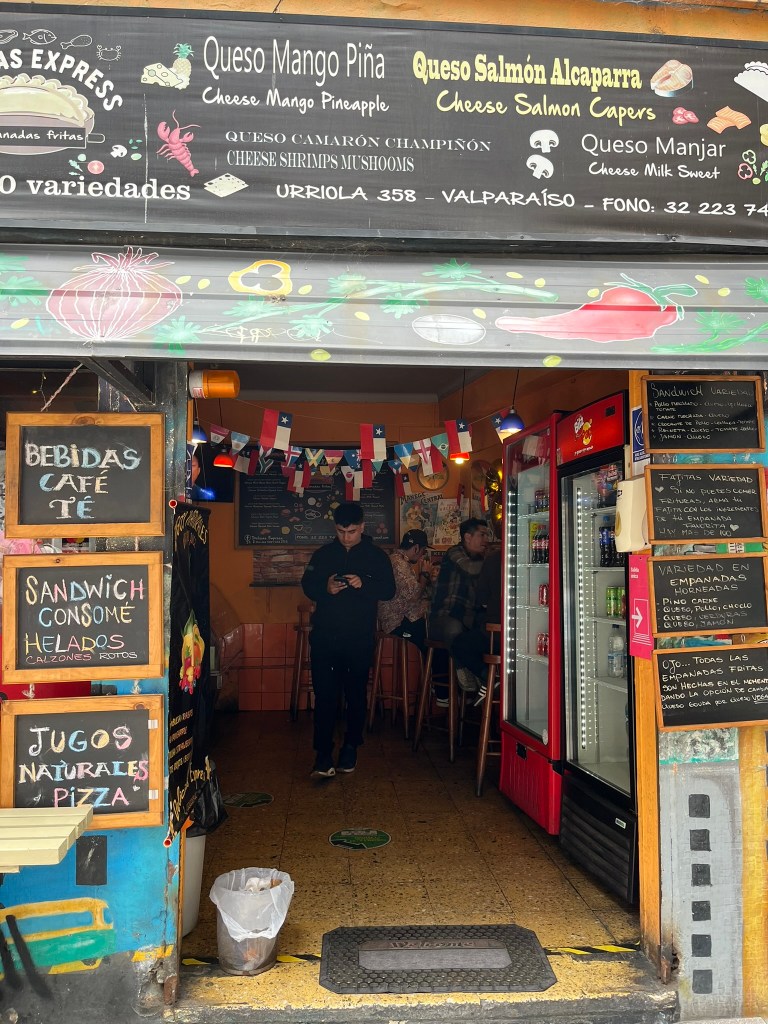 We spent around 3 hours enjoying the art work, corrugated housing and view points down to the bay, before heading down to the flat area of town via funicular for a well-earned lunch break of empanadas. Our guide recommended a small hole-in-the-wall spot that offered a huge menu of over 100 flavor combinations, all freshly made to order. The speciality in Valparaiso is to get one packed with seafood, with options like scallop and cheese or octopus and red peppers. They are enormous and one per person is more than enough. But they are absolutely delicious and I recommend finding this particular spot if you find yourself ever having lunch in Valparaiso.