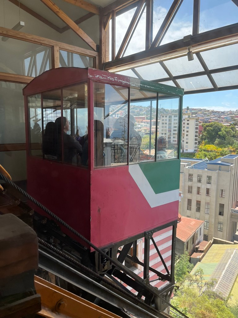 One of the highlights of the city are the wooden funiculars built in the late 19th and early 20th century, considered amongst the oldest in South America. At its peak there were around 30 funiculars in operation, but today there are only around 5 operating, although the city is working to get more up and running. They were originally privately owned, and served the working and middle-class residents who lived on the hills around the port and needed quick access to jobs and the markets below. Today, they mostly serve tourists exploring the city, costing between 10-50 pence per trip. Each funicular consists of two wooden cars counterbalanced on a shared cable, as one ascends and the other descends. Early models used steam or water-ballast systems, but were later converted to electric motors, but many still use the original iron pulleys and gear systems. Most rides last under a minute but are a novel way to travel around the town.