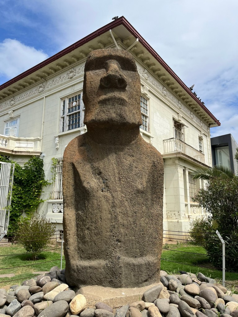 When the city was originally founded in 1878 it was envisioned as a transport hub between Valparaiso and Santiago with a railway built (that could not be built in the hills of Valparaiso itself), making the area accessible and attracting wealthy families who built summer villas and gardens. Prior to this development the area had simply been farmland belonging to two large estates. Although a nice place to visit for an hour at the end of the day, it wasn’t anywhere near as exciting as Valparaiso. The main highlight for me was seeing our first Moai statue, outside the Museo Funck. This is one of the few original Moai statues that is located off of Easter island and gave us a taste of what to expect when we head there in a few days time.