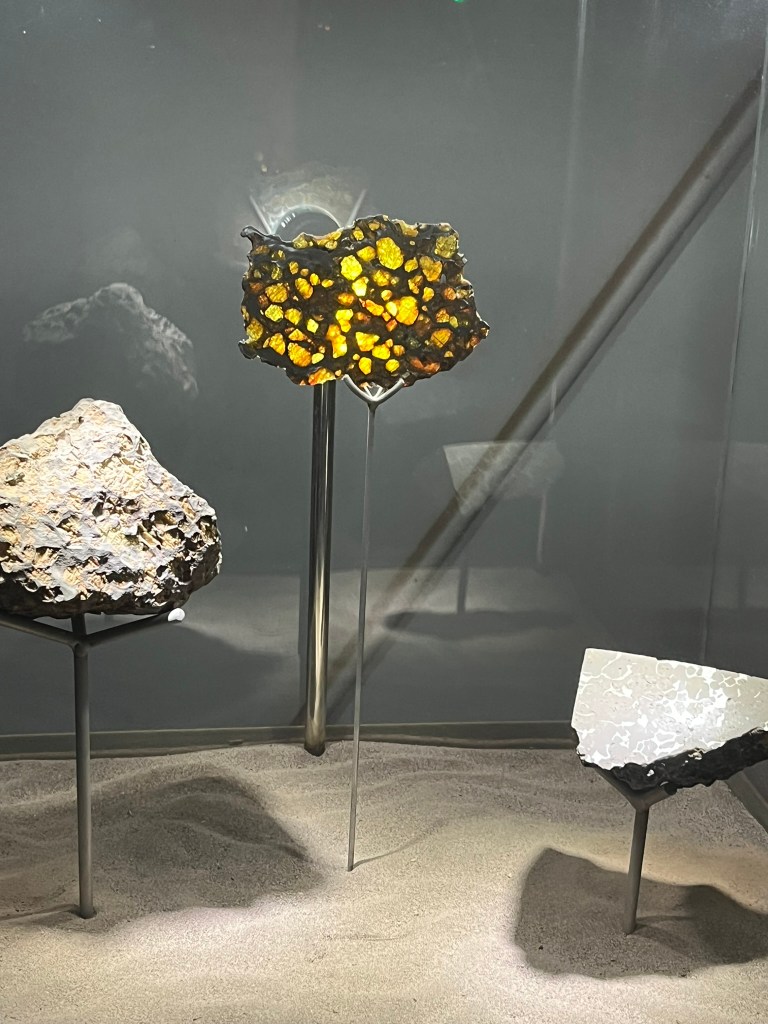 One of the most interesting things explained in the exhibits is how we can tell how the earth formed from studying them. Scientists have looked at meteorites that got big enough and hot enough to separate into layers with a metal core, silicate mantle and a basaltic crust. This explains how the Earth’s interior differentiated into an iron-nickel core, silicate mantle and crust.