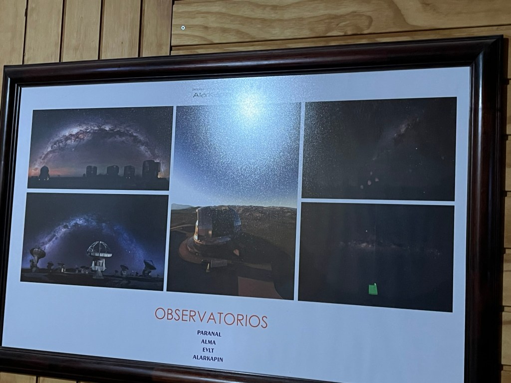 Next we headed out into the darkness, and after a couple of minutes of letting our eyes adjust, our guide started to point out major features in the sky that could be seen with the naked eye. It isn’t the right season to see the Milky Way clearly, but you can see the Magellanic clouds really well, as well as Saturn. And an enormous number of stars. The guide estimated there were probably 5000 stars visible to the naked eye at this time of year. And it increases to around 8000 during Chile’s winter season. Some of the photos from during the winter look absolutely incredible, with the Milky Way clearly visible, sweeping across the sky.