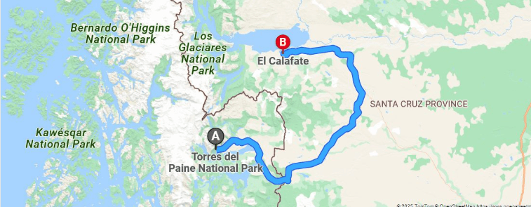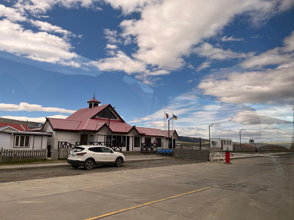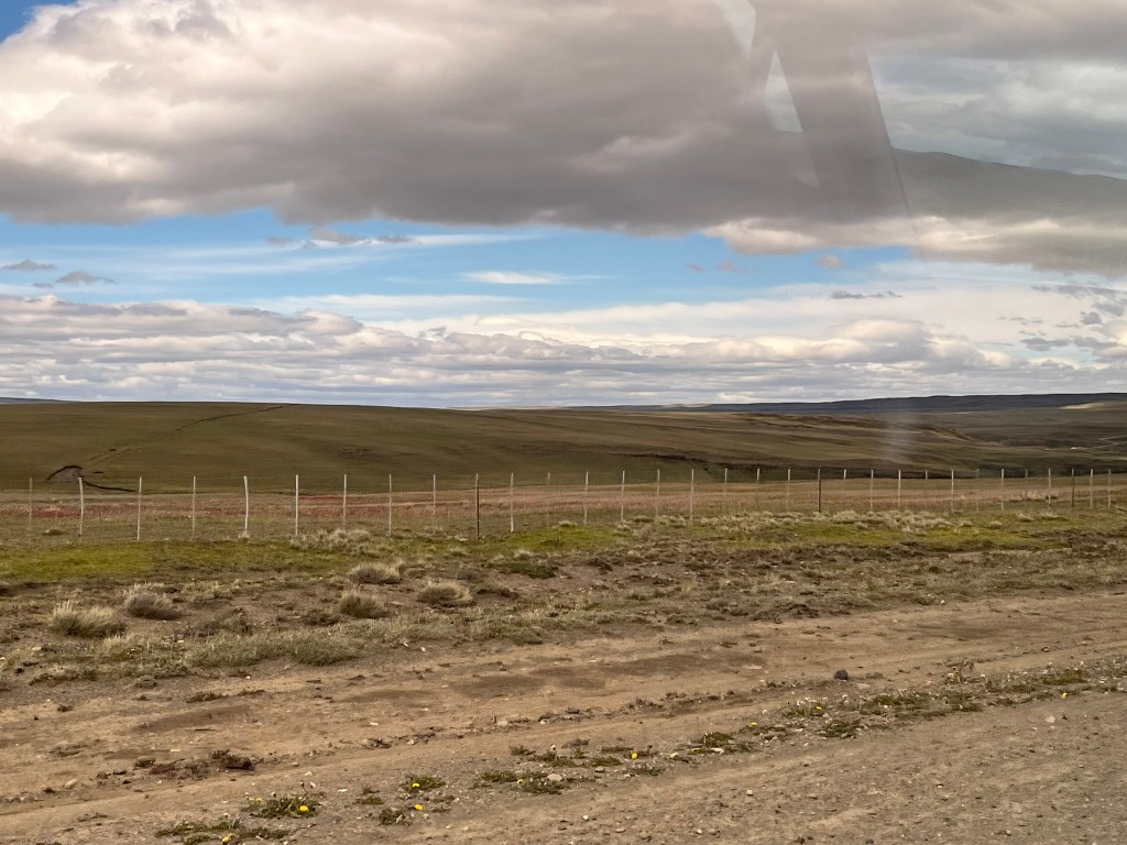 About an hour from the park, we reached the Chilean border control. Although you wouldn’t have guessed it was the border without the driver telling us to get our passports and follow him. There was just a simple barrier and a small building where migrations offices stamped us out of Chile. You then drive a few kilometers across flat steppe to reach the Argentinian border post of Cancha Carrera. And after a few more kilometers we met our new driver and switched our bags over to our new vehicle.