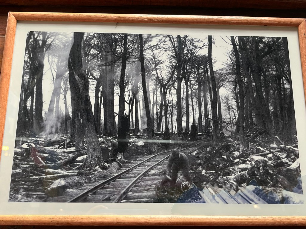 Then we headed to the End of the World train – a short, atmospheric heritage railway running along the foothills of Tierra del Fuego National Park. Now a scenic tourist experience, it was once the prison train for Ushuaia’s penal colony. Ushuaia’s notorious prison, that operated in the first half of the 20th century, needed vast quantities of wood for heating and construction.