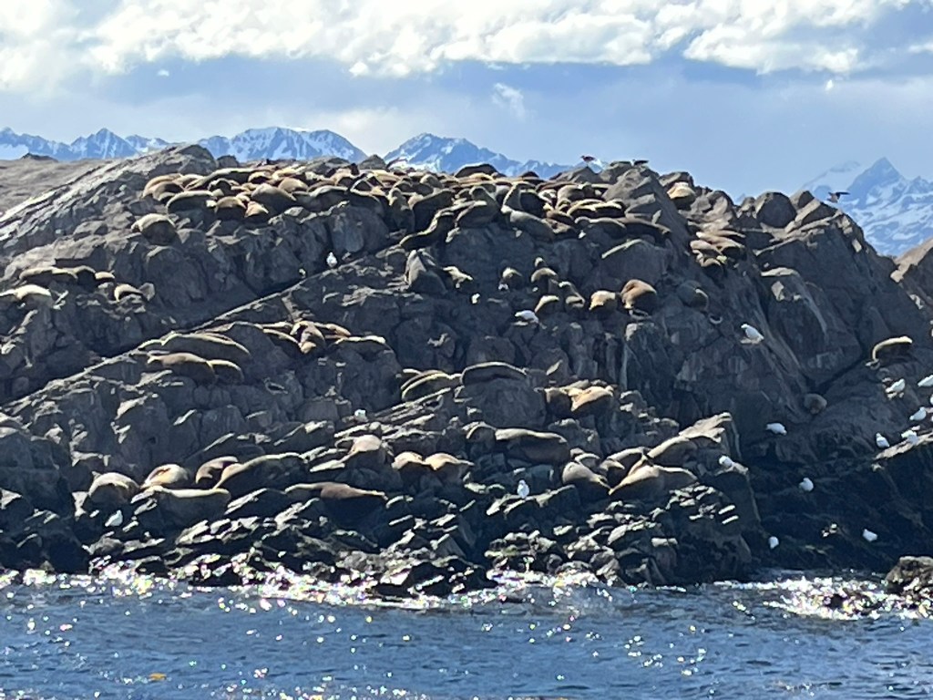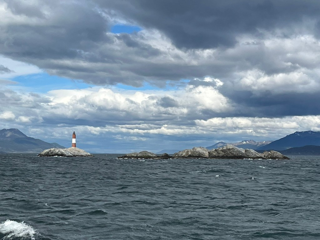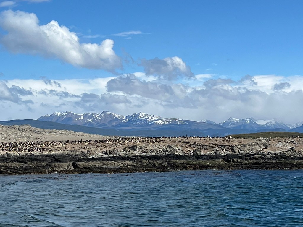 After lunch at La Cantina de Eddy, which we accidently stumbled upon, but does fantastic crab dishes, we headed to the port to join our boat tour out onto the Beagle. The Beagle Channel is a long-narrow maritime passage separating the main island of Tierra del Fuego from smaller islands to the south. It is one of the three great routes around the tip of South America, alongside the Strait of Magellan and the Drake Passage. It was named after HMS Beagle, the ship that carried Charles Darwin and is historically important for navigation, territorial disputes and exploration.